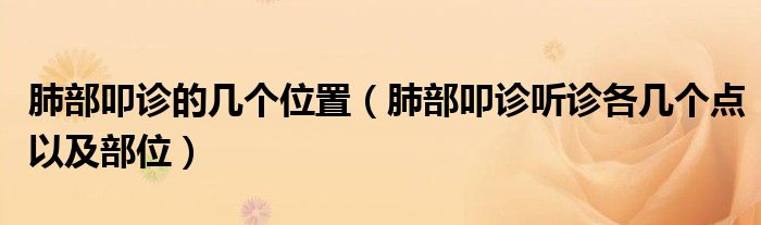 大家好,小生来为大家讲解下。肺部叩诊的几个位置,肺部叩诊听诊各几个点以及部位很多人还不知道,现在让我们一起来看看吧!