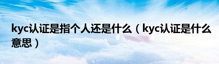 大家好,小生来为大家讲解下。kyc认证是指个人还是什么,kyc认证是什么意思很多人还不知道,现在让我们一起来看看吧!