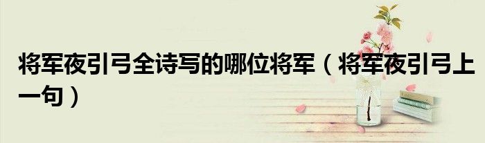 大家好,小生来为大家讲解下。将军夜引弓全诗写的哪位将军,将军夜引弓上一句很多人还不知道,现在让我们一起来看看吧!