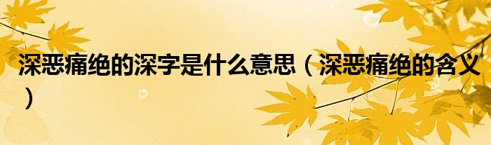 大家好,伊人来为大家解答以上问题。深恶痛绝的深字是什么意思,深恶痛绝的含义很多人还不知道,现在让我们一起来看看吧!