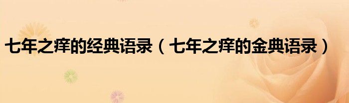 大家好,小生来为大家讲解下。七年之痒的经典语录,七年之痒的金典语录很多人还不知道,现在让我们一起来看看吧!