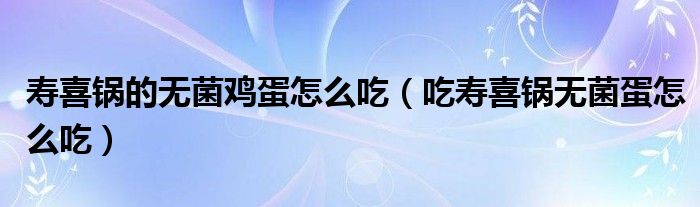大家好,小生来为大家讲解下。寿喜锅的无菌鸡蛋怎么吃,吃寿喜锅无菌蛋怎么吃很多人还不知道,现在让我们一起来看看吧!