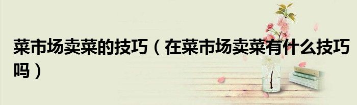 大家好,小生来为大家讲解下。菜市场卖菜的技巧,在菜市场卖菜有什么技巧吗很多人还不知道,现在让我们一起来看看吧!