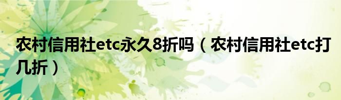 大家好,小生来为大家讲解下。农村信用社etc永久8折吗,农村信用社etc打几折很多人还不知道,现在让我们一起来看看吧!