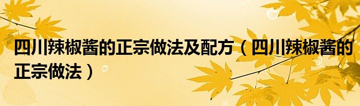 大家好,小生来为大家讲解下。四川辣椒酱的正宗做法及配方,四川辣椒酱的正宗做法很多人还不知道,现在让我们一起来看看吧!