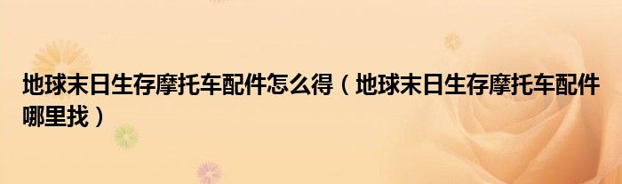 大家好,小生来为大家讲解下。地球末日生存摩托车配件怎么得,地球末日生存摩托车配件哪里找很多人还不知道,现在让我们一起来看看吧!