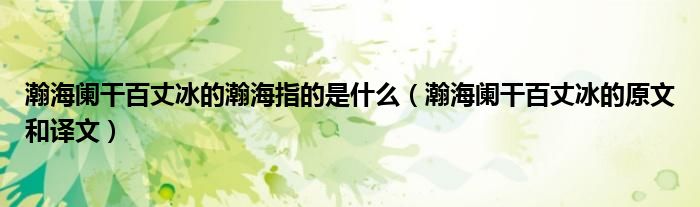 大家好,伊人来为大家解答以上问题。瀚海阑干百丈冰的瀚海指的是什么,瀚海阑干百丈冰的原文和译文很多人还不知道,现在让我们一起来看看吧!