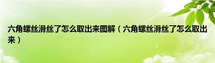 大家好,小生来为大家讲解下。六角螺丝滑丝了怎么取出来图解,六角螺丝滑丝了怎么取出来很多人还不知道,现在让我们一起来看看吧!