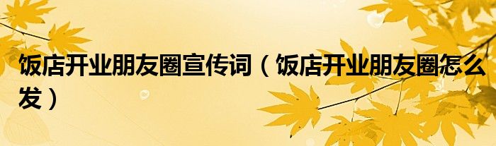 大家好,小生来为大家讲解下。饭店开业朋友圈宣传词,饭店开业朋友圈怎么发很多人还不知道,现在让我们一起来看看吧!