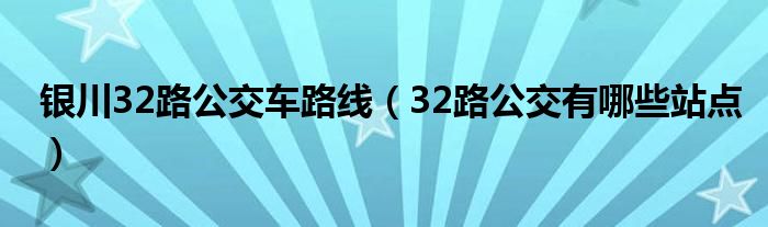 大家好,伊人来为大家解答以上问题。银川32路公交车路线,32路公交有哪些站点很多人还不知道,现在让我们一起来看看吧!