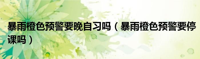 大家好,小生来为大家讲解下。暴雨橙色预警要晚自习吗,暴雨橙色预警要停课吗很多人还不知道,现在让我们一起来看看吧!