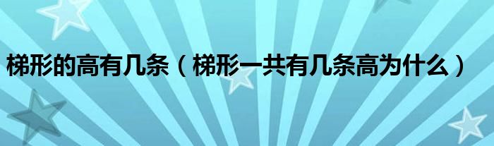 大家好,小生来为大家讲解下。梯形的高有几条,梯形一共有几条高为什么很多人还不知道,现在让我们一起来看看吧!