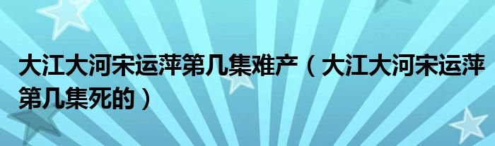 大家好,小生来为大家讲解下。大江大河宋运萍第几集难产,大江大河宋运萍第几集死的很多人还不知道,现在让我们一起来看看吧!