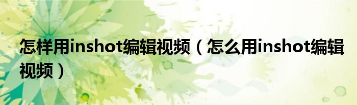 大家好,小生来为大家讲解下。怎样用inshot编辑视频,怎么用inshot编辑视频很多人还不知道,现在让我们一起来看看吧!
