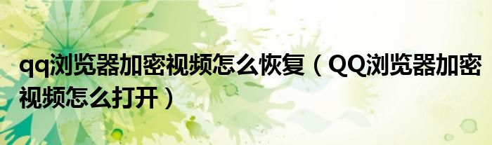 大家好,小生来为大家讲解下。qq浏览器加密视频怎么恢复,QQ浏览器加密视频怎么打开很多人还不知道,现在让我们一起来看看吧!