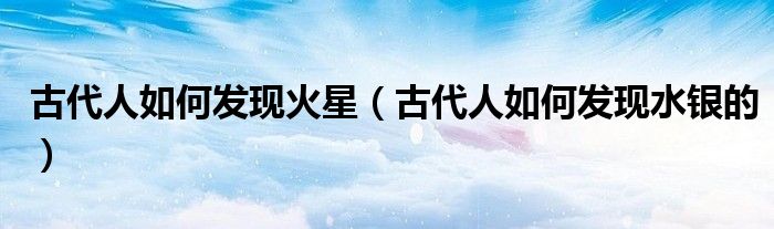 大家好,小生来为大家讲解下。古代人如何发现火星,古代人如何发现水银的很多人还不知道,现在让我们一起来看看吧!