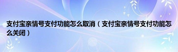 大家好,小生来为大家讲解下。支付宝亲情号支付功能怎么取消,支付宝亲情号支付功能怎么关闭很多人还不知道,现在让我们一起来看看吧!