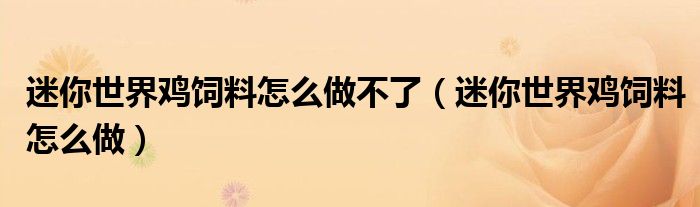 大家好,小生来为大家讲解下。迷你世界鸡饲料怎么做不了,迷你世界鸡饲料怎么做很多人还不知道,现在让我们一起来看看吧!