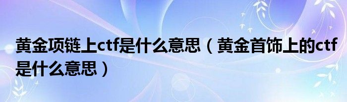 大家好,小生来为大家讲解下。黄金项链上ctf是什么意思,黄金首饰上的ctf是什么意思很多人还不知道,现在让我们一起来看看吧!