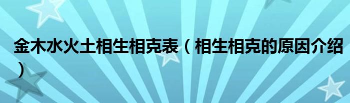 大家好,伊人来为大家解答以上问题。金木水火土相生相克表,相生相克的原因介绍很多人还不知道,现在让我们一起来看看吧!