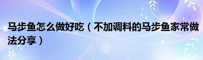 大家好,伊人来为大家解答以上问题。马步鱼怎么做好吃,不加调料的马步鱼家常做法分享很多人还不知道,现在让我们一起来看看吧!