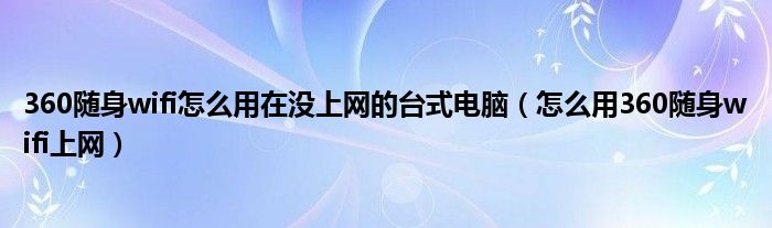 大家好,伊人来为大家解答以上问题。360随身wifi怎么用在没上网的台式电脑,怎么用360随身wifi上网很多人还不知道,现在让我们一起来看看吧!