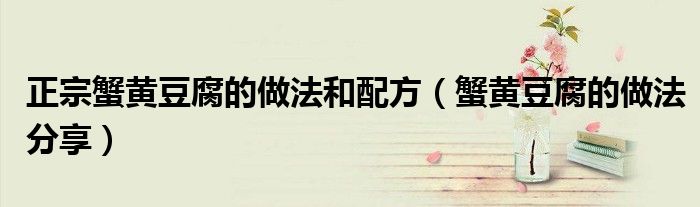 大家好,伊人来为大家解答以上问题。正宗蟹黄豆腐的做法和配方,蟹黄豆腐的做法分享很多人还不知道,现在让我们一起来看看吧!