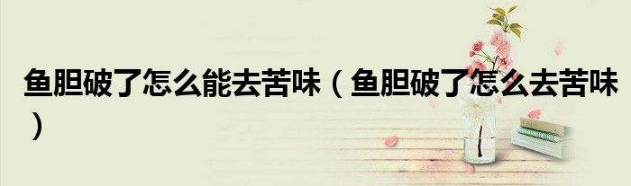 大家好,小生来为大家讲解下。鱼胆破了怎么能去苦味,鱼胆破了怎么去苦味很多人还不知道,现在让我们一起来看看吧!