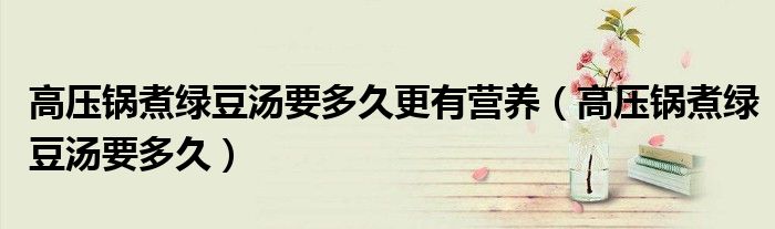 大家好,小生来为大家讲解下。高压锅煮绿豆汤要多久更有营养,高压锅煮绿豆汤要多久很多人还不知道,现在让我们一起来看看吧!