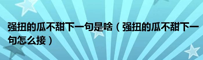 大家好,小生来为大家讲解下。强扭的瓜不甜下一句是啥,强扭的瓜不甜下一句怎么接很多人还不知道,现在让我们一起来看看吧!