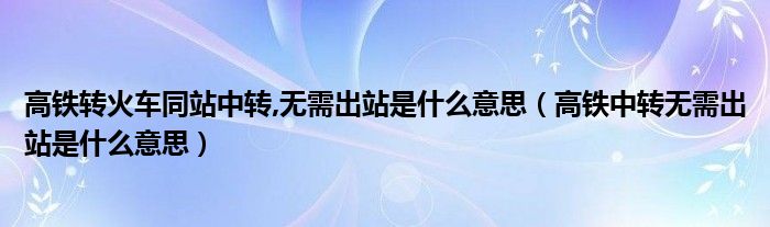 大家好,小生来为大家讲解下。高铁转火车同站中转,无需出站是什么意思,高铁中转无需出站是什么意思很多人还不知道,现在让我们一起来看看吧!