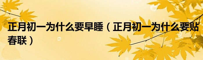 大家好,小生来为大家讲解下。正月初一为什么要早睡,正月初一为什么要贴春联很多人还不知道,现在让我们一起来看看吧!