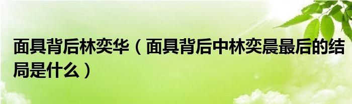 大家好,小生来为大家讲解下。面具背后林奕华,面具背后中林奕晨最后的结局是什么很多人还不知道,现在让我们一起来看看吧!