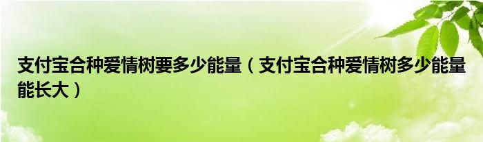 大家好,小生来为大家讲解下。支付宝合种爱情树要多少能量,支付宝合种爱情树多少能量能长大很多人还不知道,现在让我们一起来看看吧!