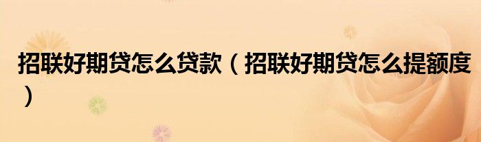大家好,小生来为大家讲解下。招联好期贷怎么贷款,招联好期贷怎么提额度很多人还不知道,现在让我们一起来看看吧!