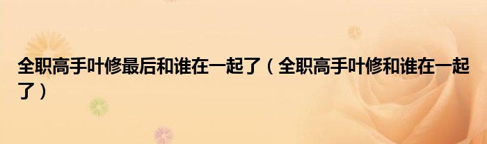 大家好,小生来为大家讲解下。全职高手叶修最后和谁在一起了,全职高手叶修和谁在一起了很多人还不知道,现在让我们一起来看看吧!
