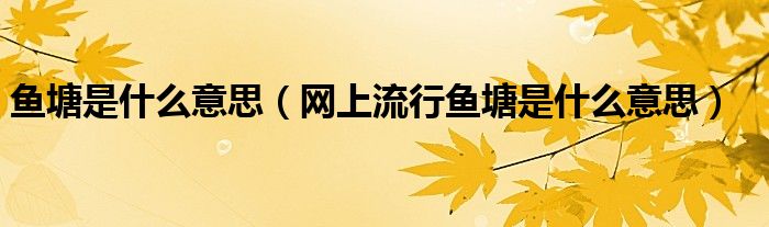 大家好,小生来为大家讲解下。鱼塘是什么意思,网上流行鱼塘是什么意思很多人还不知道,现在让我们一起来看看吧!