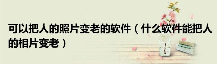 大家好,小生来为大家讲解下。可以把人的照片变老的软件,什么软件能把人的相片变老很多人还不知道,现在让我们一起来看看吧!