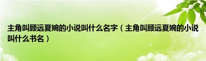 大家好,伊人来为大家解答以上问题。主角叫顾远夏婉的小说叫什么名字,主角叫顾远夏婉的小说叫什么书名很多人还不知道,现在让我们一起来看看吧!