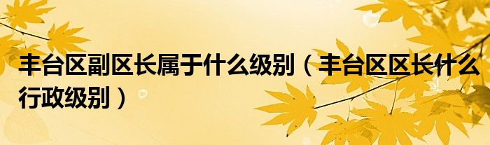 大家好,小生来为大家讲解下。丰台区副区长属于什么级别,丰台区区长什么行政级别很多人还不知道,现在让我们一起来看看吧!