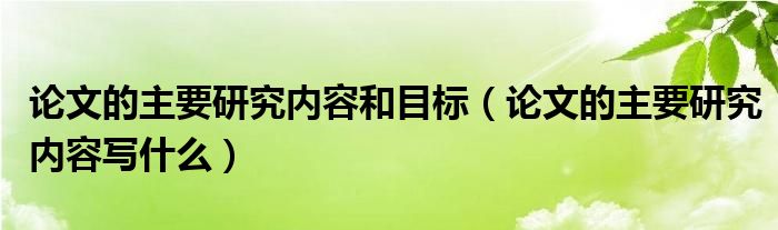大家好,小生来为大家讲解下。论文的主要研究内容和目标,论文的主要研究内容写什么很多人还不知道,现在让我们一起来看看吧!