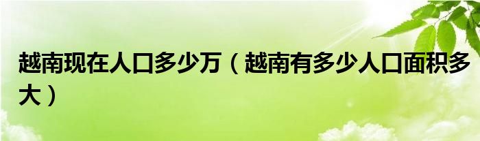 大家好,小生来为大家讲解下。越南现在人口多少万,越南有多少人口面积多大很多人还不知道,现在让我们一起来看看吧!