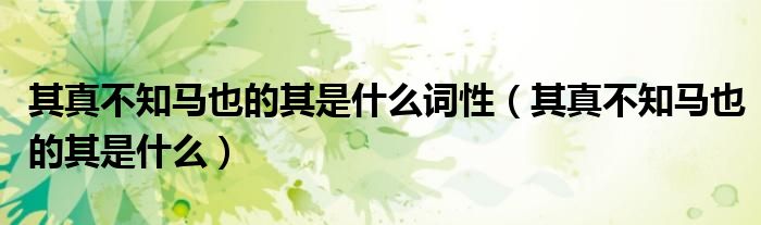 大家好,小生来为大家讲解下。其真不知马也的其是什么词性,其真不知马也的其是什么很多人还不知道,现在让我们一起来看看吧!
