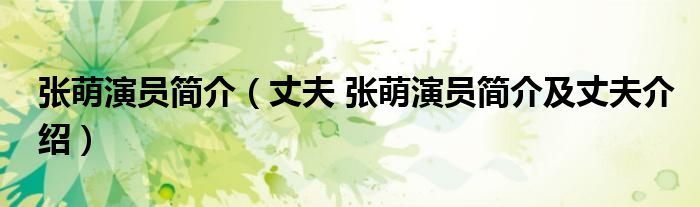 大家好,伊人来为大家解答以上问题。张萌演员简介,丈夫 张萌演员简介及丈夫介绍很多人还不知道,现在让我们一起来看看吧!