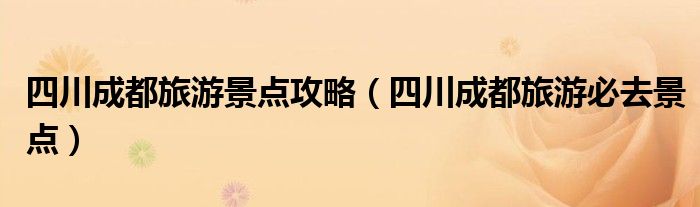 大家好,伊人来为大家解答以上问题。四川成都旅游景点攻略,四川成都旅游必去景点很多人还不知道,现在让我们一起来看看吧!