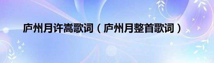 大家好,伊人来为大家解答以上问题。庐州月许嵩歌词,庐州月整首歌词很多人还不知道,现在让我们一起来看看吧!