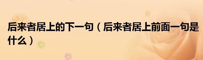大家好,小生来为大家讲解下。后来者居上的下一句,后来者居上前面一句是什么很多人还不知道,现在让我们一起来看看吧!