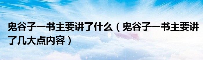 大家好,小生来为大家讲解下。鬼谷子一书主要讲了什么,鬼谷子一书主要讲了几大点内容很多人还不知道,现在让我们一起来看看吧!