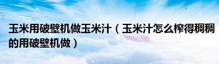 大家好,小生来为大家讲解下。玉米用破壁机做玉米汁,玉米汁怎么榨得稠稠的用破壁机做很多人还不知道,现在让我们一起来看看吧!