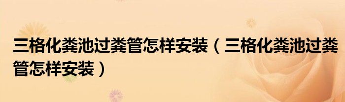 大家好,小生来为大家讲解下。三格化粪池过粪管怎样安装,三格化粪池过粪管怎样安装很多人还不知道,现在让我们一起来看看吧!